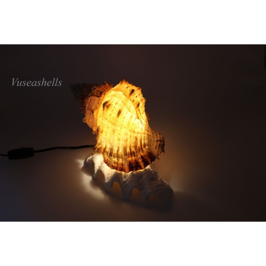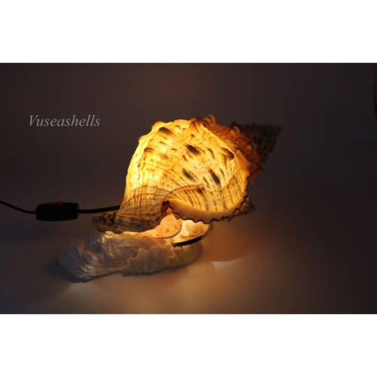 ✔ Đèn ốc gai vàng được làm bằng vỏ ốc Gai Vàng, vỏ ốc trang trí khác, kết gắn bằng keo.