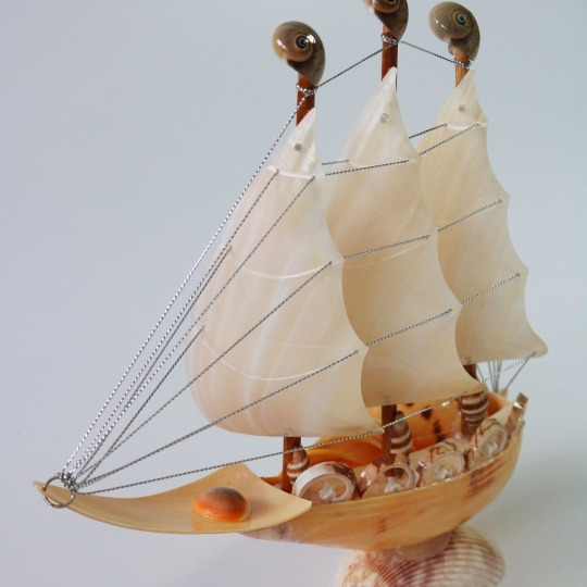 Thuyền buồm ra khơi (thuyền vỏ ốc giác 3 buồm)